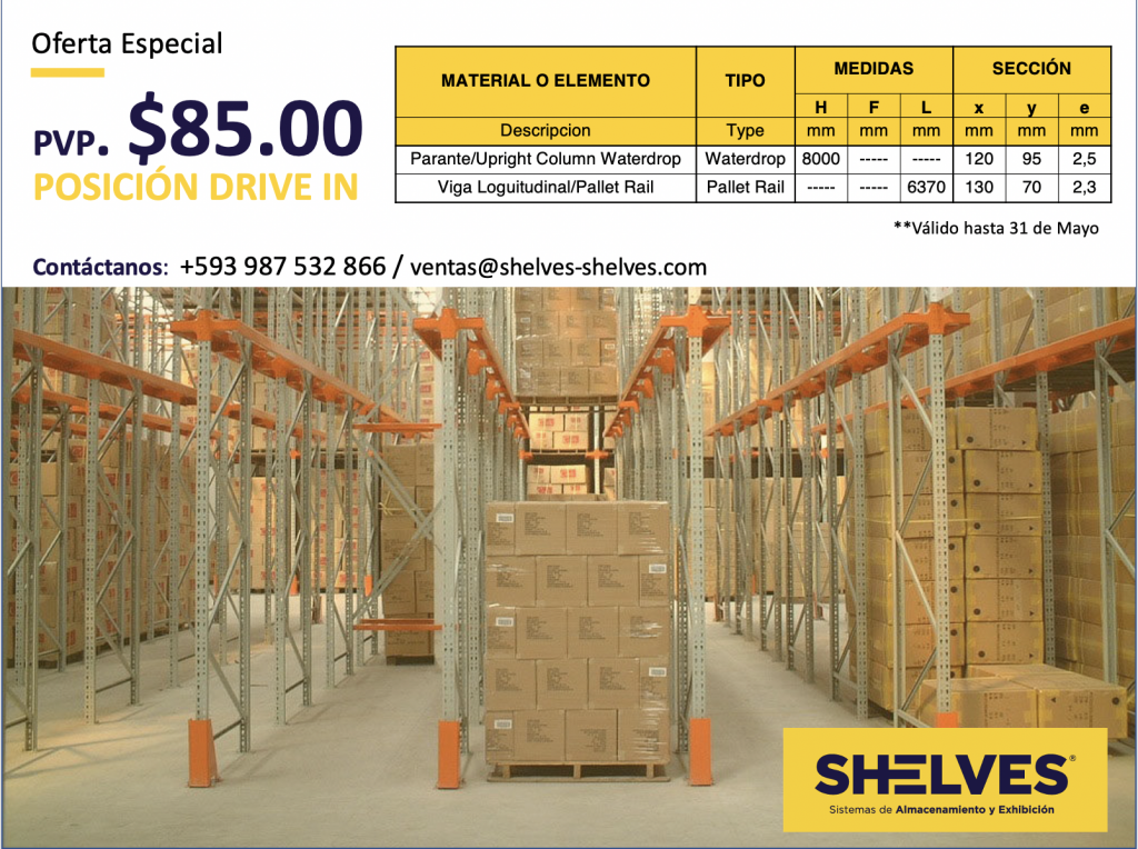 Este mes de MAYO, SHELVES, te brinda una oferta especial en el sistema de almacenaje DRIVE IN!!! Es la oportunidad de aprovechar esta gran promoción…